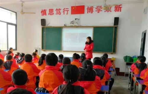 团城山小学妇委会委员黄彩霞正在为学生进行专题讲座