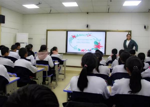 ▲ 有色中学妇委会委员陈晓珍老师给学生进行专题讲座