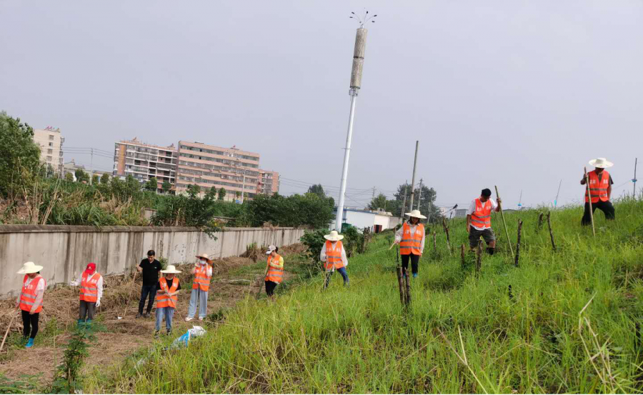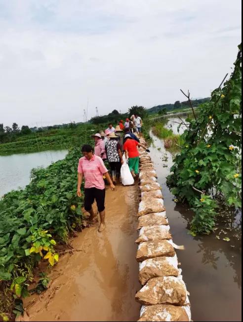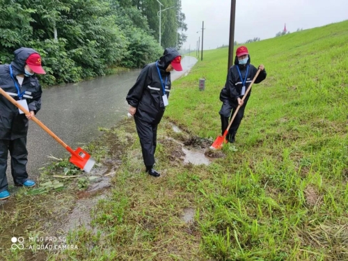 鄂州市鄂城区杨家湖社区妇女同志们参与巡堤查险。