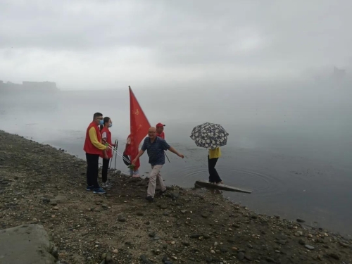丹江口市各级妇联组织人员沿河岸进行巡河,对群众开展安全防范教育。