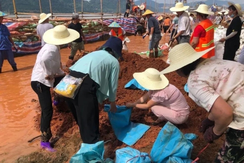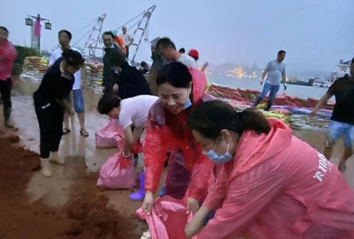 武穴市防汛“娘子军”自发来到抗洪防汛前线上,用汗水为防汛抗洪贡献着自己的力量。