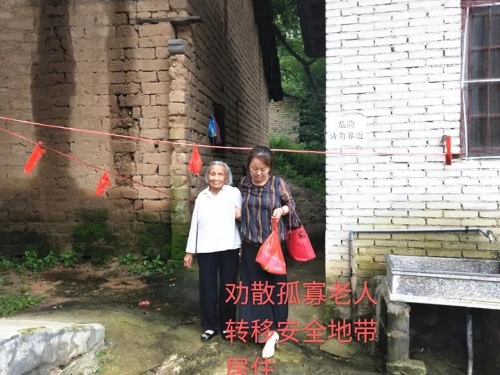 罗田县大刘垸村妇联主席徐亚平,帮助本村失去儿子的重残老人从危险土坯房中转移到安全地方居住。