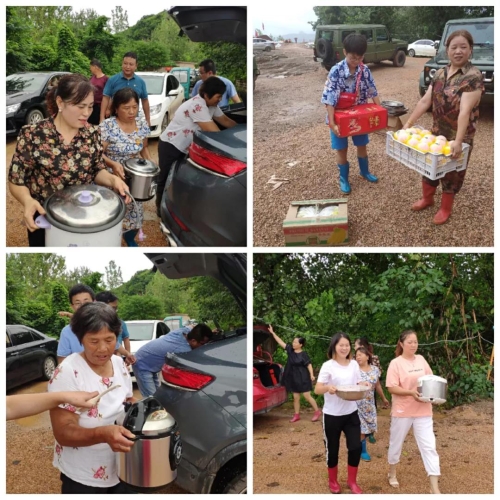 武穴市兰州社区妇联主席吴凤梅最先在6个居民小组群、1个党员群以及社区防汛微信群内发布鼓励妇女制作爱心盒饭的消息。社区妇女积极响应,不一会儿就有十几个妇女报名要参加。十几个人带着饭菜,抱着14个电饭煲,风风火火地赶往金牛湖防汛点。