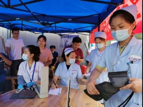 武穴市田镇卫生院妇委会主任刘群芳为保障防汛人员身体健康,7月15日晚上十点多,她还带着医务人员在长江干堤宣传防疫知识,提醒大家露宿注意事项,并为个别特殊人群送医、送药。