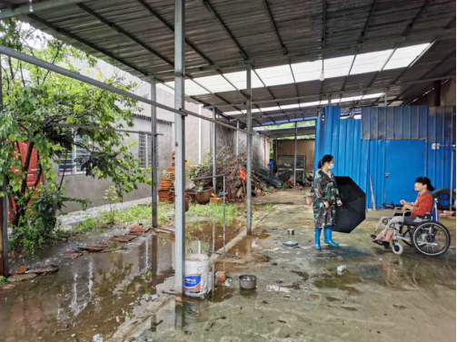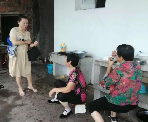 鄂州市长港镇妇联主席赵细枝在滨港村贫困妇女和低保户家中询问受灾情况,了解她们的诉求,并积极联系有关部门争取政策支持。