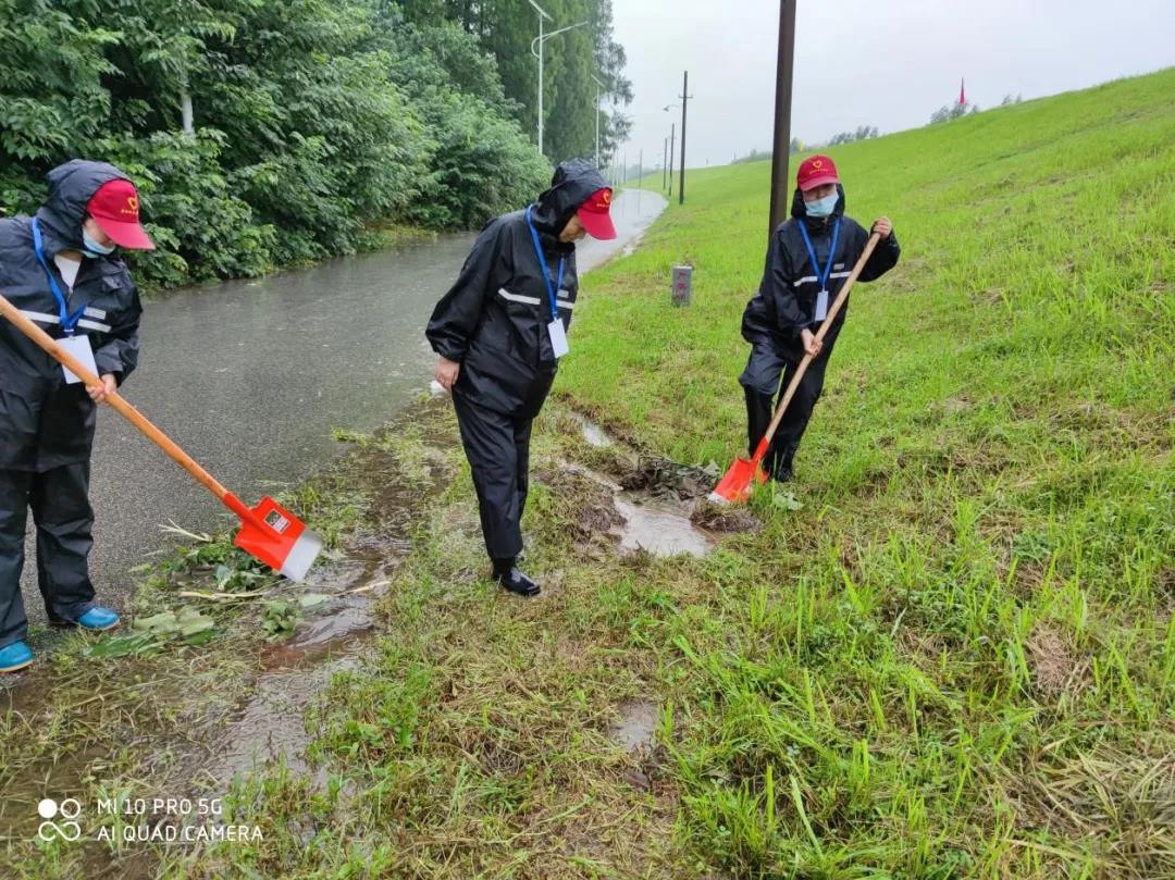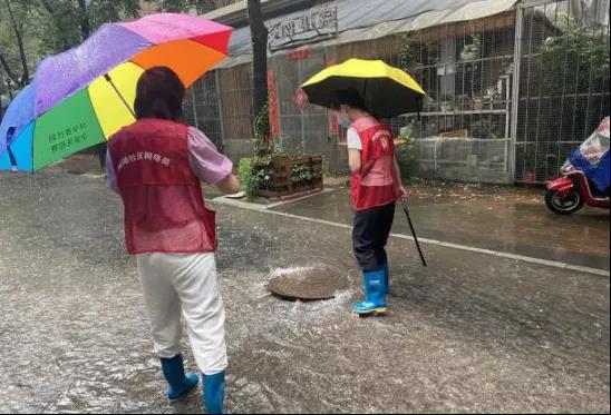 湖北省三八红旗手、鄂州市澜湖社区党委书记曹伊灵带领澜湖社区三八红旗手志愿服务队成员深入辖区开展防汛巡查,排查安全隐患。