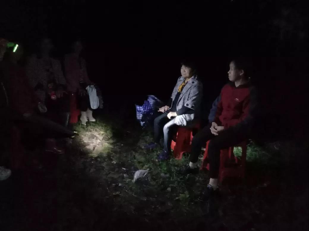 石首市三兴村妇女深夜在堤边值守,观察水位上涨情况。