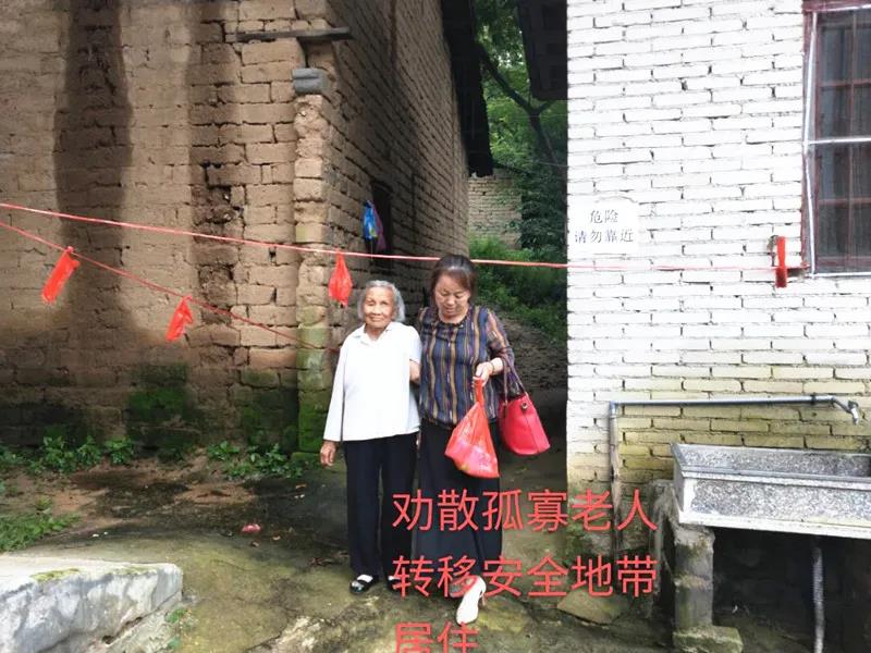 罗田县汪家冲村支部书记、村委会主任兼妇联主席方凤琴,连夜入户动员并转移在土坯房居住的留守老人。