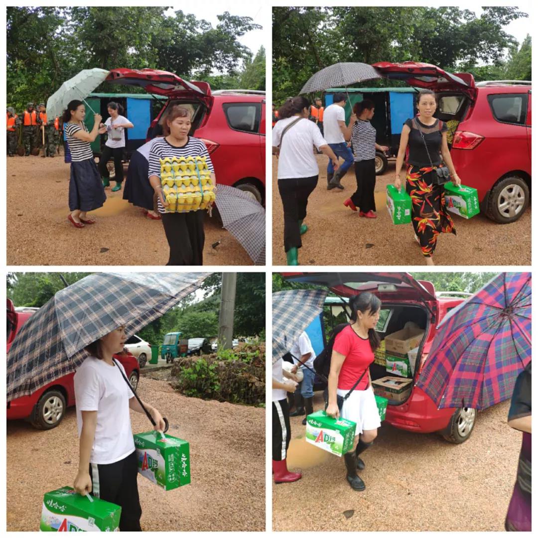 武穴市田镇社区凤姐舞蹈队队长潘凤娥找来舞蹈队的姐妹,大家一起出钱买来了210个皮蛋、一箱饼干、6提牛奶,苹果、香蕉各一件,火速送往防汛前线的官兵手中。