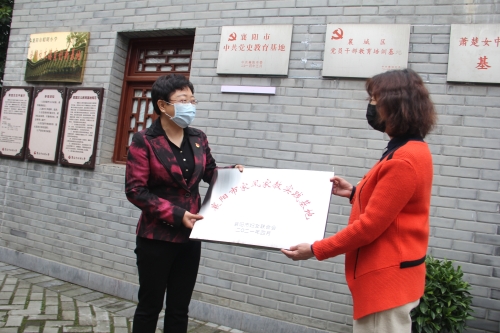 襄阳市妇联党组书记、主席王红向萧楚女纪念馆授牌,希望基地更好的挖掘红色故事,运用多种形式讲述革命烈士故事,汲取榜样力量,引领和激励更多家庭厚植爱国情怀,为高质量推进襄阳“一极两中心”建设凝聚家庭力量。