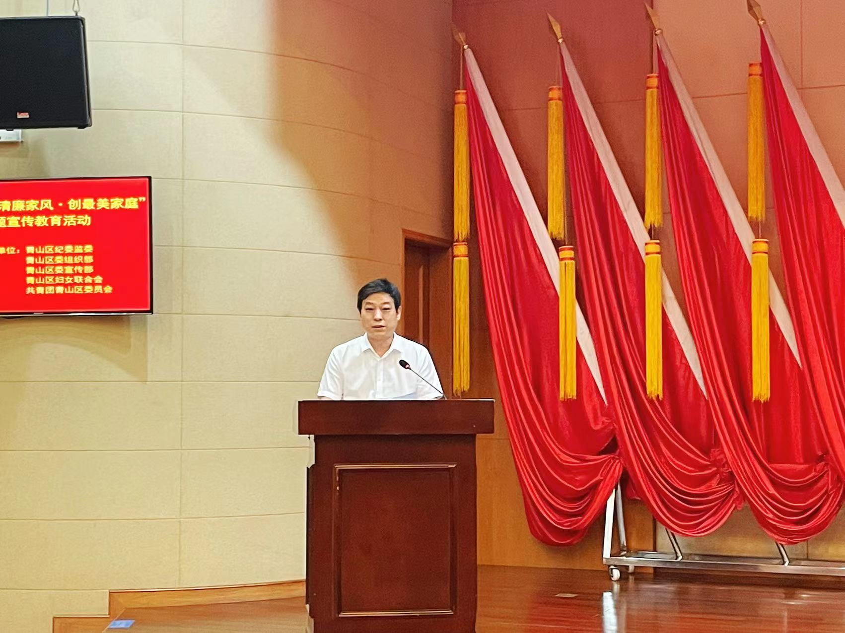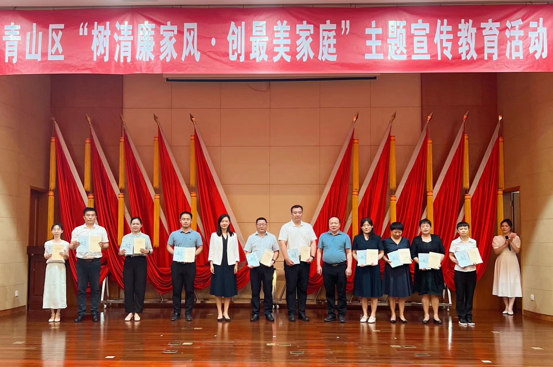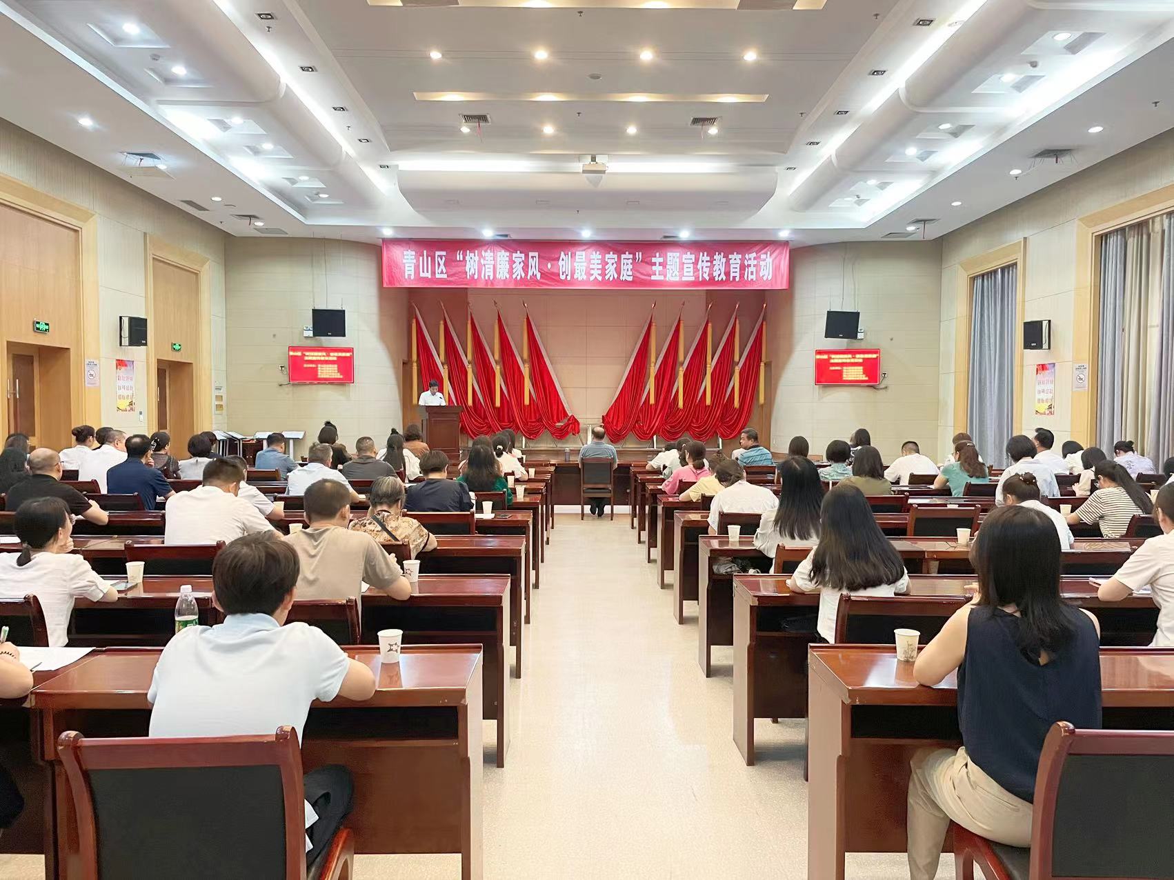 为深入贯彻习近平总书记关于注重家庭家教家风建设重要论述,认真落实党的二十大精神,加强清廉青山、清廉家庭建设,7月28日,青山区纪委监委、区委组织部、区委宣传部、区妇联、团区委,在区机关会议中心二号厅联合举办了“树清廉家风·创最美家庭”主题宣传教育活动。
