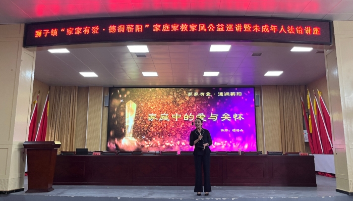 为贯彻落实习近平总书记关于注重家庭、注重家教、注重家风的重要指示精神,以良好的家风守护少年儿童健康茁壮成长,9月14日下午,蕲春县“家家有爱•德润蕲阳”家庭教育公益巡讲暨未成年人法治讲座走进狮子镇。蕲春县妇联党组成员、副主席蓝岚,狮子镇纪委书记李学智以及宣传办、综治办、民政办、妇联、派出所、司法所等单位相关负责人,全镇29个村的妇联主席、治保主任、部分家庭及学生代表等共计400余人参加活动。