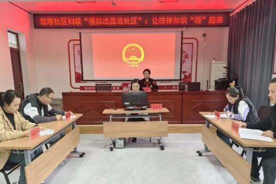 武汉市妇联采用“内场普法+场外宣传”模式,通过律师授课、案例解读、互动游戏普及反家暴维权要点,场外设置十余个便民服务台,提供“一站式”关爱服务;青山区妇联联合法院打造“连心驿站”亲子会见室,传递司法温情的同时同步普法;经开区妇联联动社区开展“模拟法庭进社区”活动,让法律知识在实景模拟中“活”起来。各区以专题培训、主题宣传、承诺签名等多种方式提升公众反家暴意识和妇联干部履职能力。